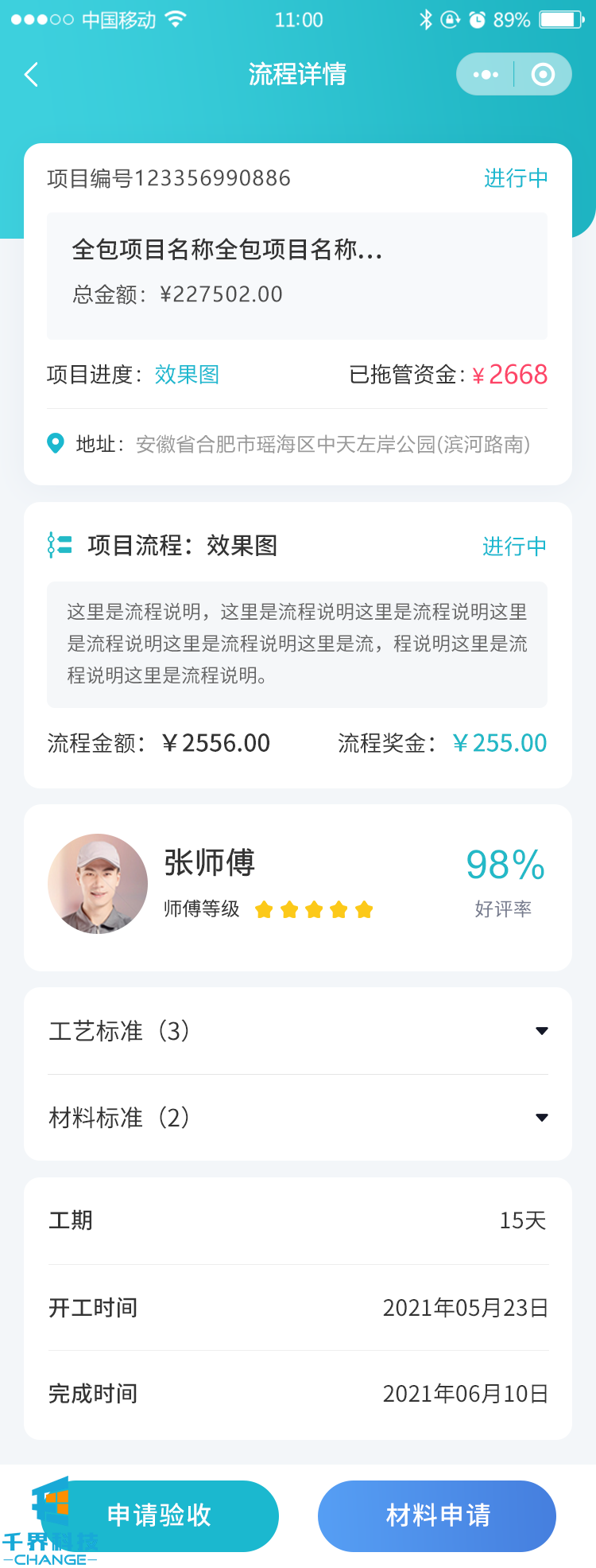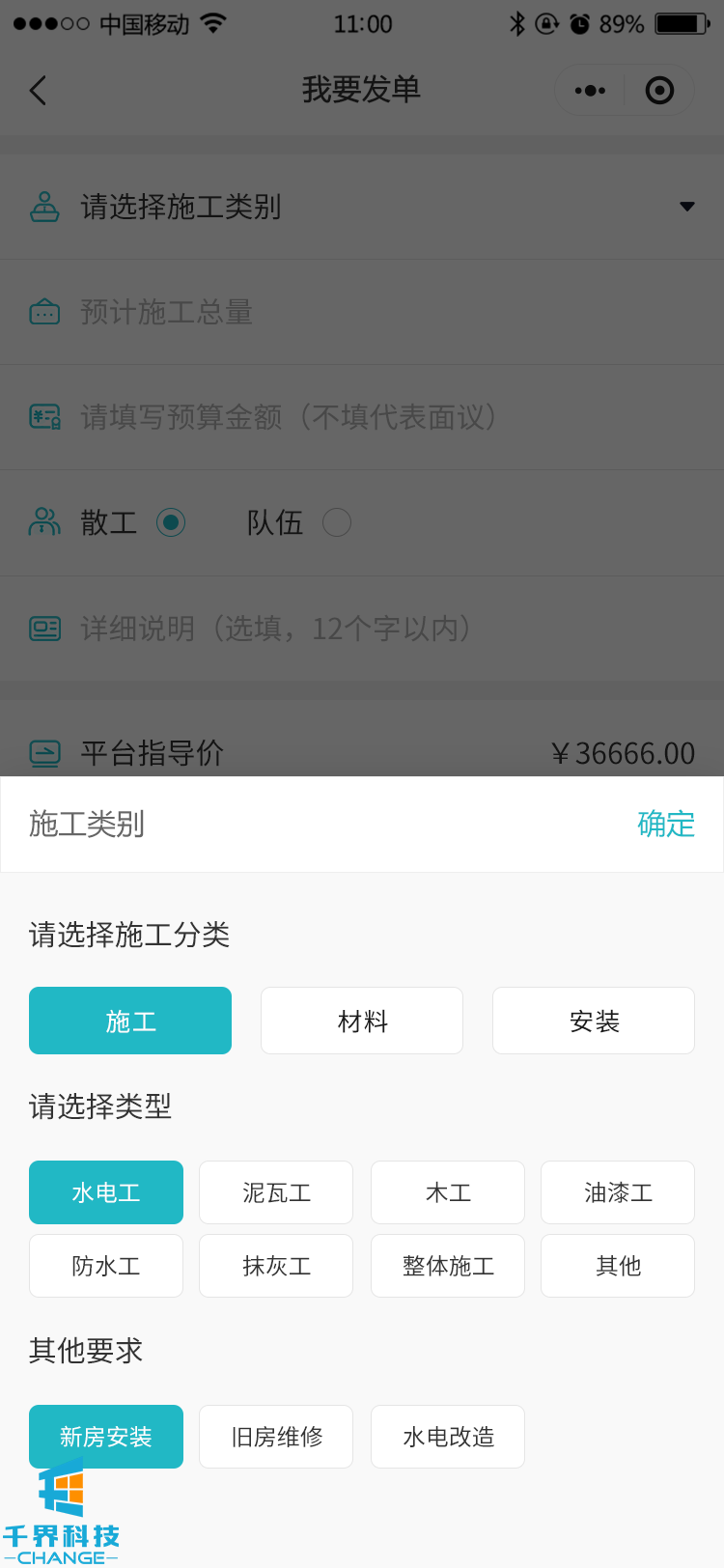 該項目一個家裝小程序,平臺有分包和整包,分包是用戶在前端下單,對應(yīng)的師傅進行接單,整包是后臺進行發(fā)包,每個節(jié)點的師傅相應(yīng)的報名接單