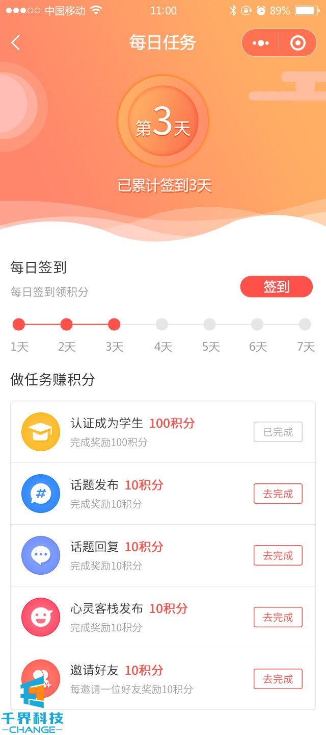 一款針對學生的綜合社交平臺,包含話題、點贊、分享、個人空間、在線簽到、完成任務、心靈社區等等