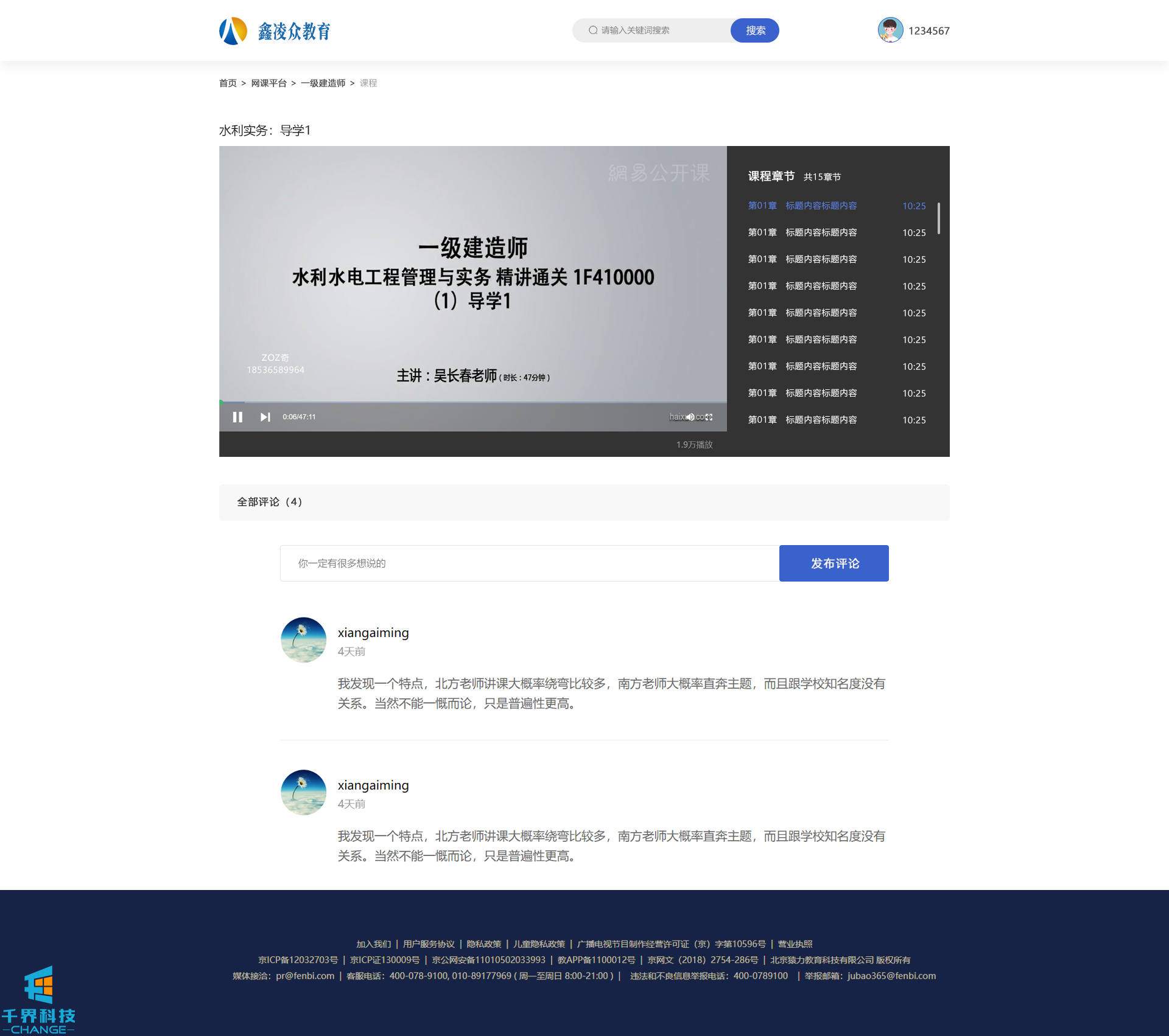 項目名稱:鑫凌眾pc網課學習平臺 項目類型:網站建設
